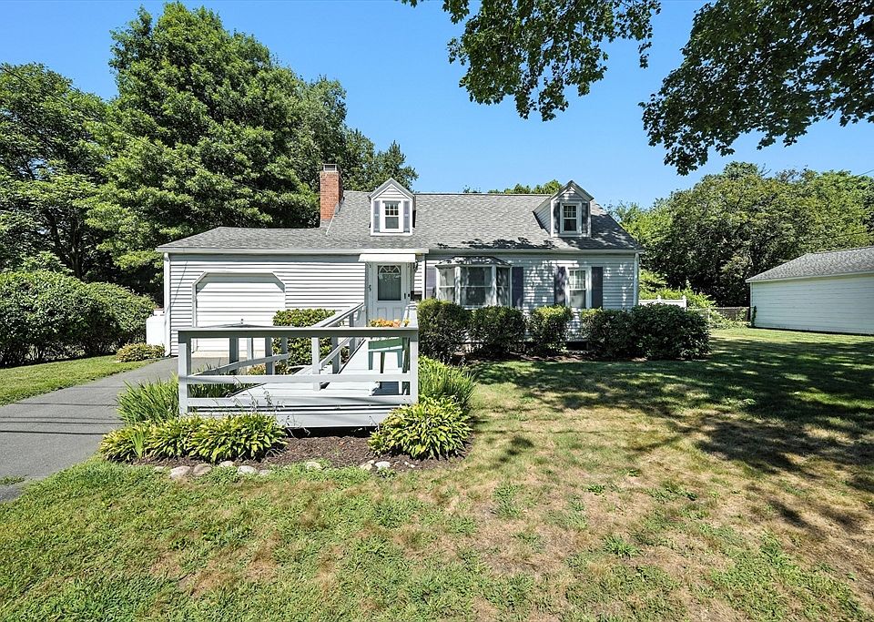 Nestled away from the hustle and bustle, this sweet, lovingly cared-for, Cape-style home is ready for new memories to be made! Situated at the end of the street, this home offers a ramp for assistance, two bedrooms located on the main floor & first floor laundry. The living room features beautiful sconce lighting, a welcoming fireplace & an open half wall leading to the kitchen. Stainless steel appliances & plenty of cabinet space as well as a closet housing the W/D make the kitchen both practical & inviting. Optional W/D hookups also located in the basement! The dining room may also serve as a mudroom based on your needs as there's garage as well as backyard access. Two full baths (one on each floor), central air & backup generator set this Cape apart from the rest! Two more large, dormered bedrooms complete the second floor with ample closet storage & built-in drawers. Host company in your backyard paradise with inground pool, fenced-in patio area & spacious backyard for lawn games!