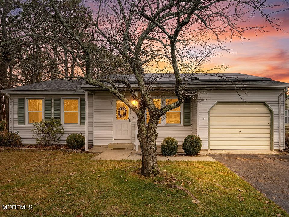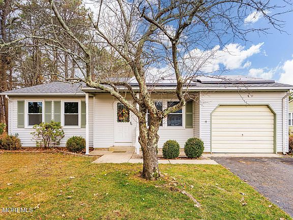 Just Perfect! Single family detached home -Sooooo Quiet -next to woods See so many species of birds - Deer everyday-updated with BRAND NEW Roof, flooring, recessed lighting built in microwave, dishwasher--Replacement windows. Home has leased solar panels which make for almost zero electric bills. Also- see pics of beautiful clubhouse with lobby, indoor pickleball and shuffleboard courts, billiard and fitness rooms, library, kitchen, outdoor picnic grounds, mini golf course and bocce ball courts. All this for under 300k- JUST PERFECT!!