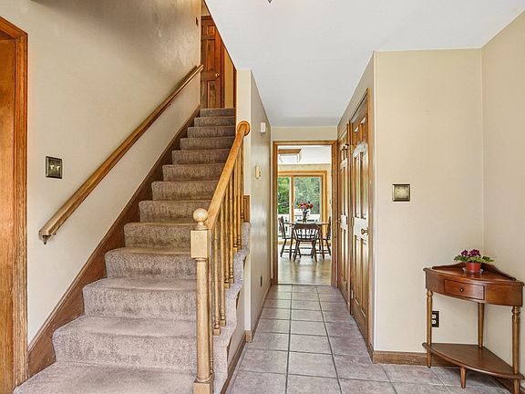 This beautiful hip roof colonial is located in one of the most sought after neighborhoods in Danville! Manicured two acre lot with plush green grass and gorgeous back yard oasis! Fabulous floor plan with living room, large eat in kitchen, dining room, vaulted ceiling family room with fireplace and 1/2 bath with laundry. Second level has 4 generous sized bedroom with 2 full baths. Lower level with wood stove, window and plenty of room for expansion. 2 stall garage with workshop room is a plus! The HEATED inground pool has a newer liner, pool pump and electric heater. Back deck has been updated and is private overlooking the pool, firepit area and woods. Walking distance to the Clyde Goldthwaite Recreational Field! Lots of updates and ready for new owners to enjoy!