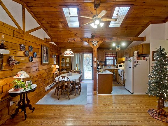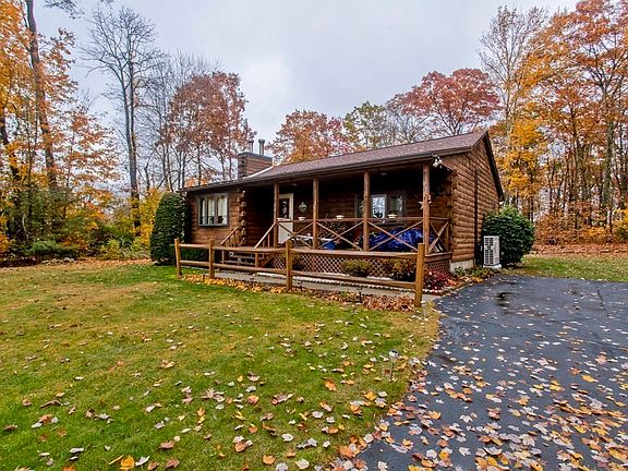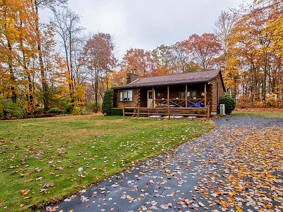Country roads will take you home to this charming Log Home. Rocking chairs welcome on the inviting front porch-A perfect spot to watch the Sun set. Step in to the open floor plan where the warmth of finely crafted wood and soaring ceilings surrounds you. Lovely fireplace is centrally located to provide both warmth and ambiance in the open living/dining and Kitchen areas. Deck off kitchen looks out to the yard and woods. House has electric heat but also comes with 4 Mitsubishi Mini Splits installed in June 2021. Lower level has an additional fireplace with a separate flue- can easily accommodate, wood, coal or a pellet stove. There is a pool table being left for Buyer enjoyment. This home has been lovingly taken care of -new windows( wood interior with metal frames, 2005, Front and Storm doors 2015- are some of the upgrades. Sale will be subject to seller finding suitable housing