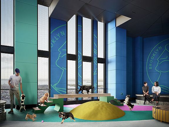 Residents at Brooklyn Tower have access to one of the largest residential amenity offerings in New York. A world-class performance-infused lifestyle, secured with over 100,000 square feet of exclusive indoor and outdoor leisure spaces. Life Time Athletic Club will manage an impressive array of amenities including a 75" outdoor lap pool and whirlpool, fully-serviced poolside lounge and atrium, billiards room, library lounge, conference room, and theater with wet bar. Dedicated private resident amenities include a children's playroom, limited off-site parking, and the coveted Sky Park, boasting an open-air loggia featuring a basketball court, playground, and dog run.