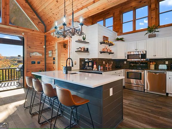 HUGE PRICE IMPROVEMENT ON THIS TURN-KEY VACATION RENTAL, GROSSING OVER $74K in 2024 RENTAL REVENUE and NO HOA FEES! This beautifully updated home offers stylish & luxurious finishes throughout and three levels of comfortable space, allowing you to take in the year-round mountain views of the Cohutta Wilderness. The main level features an open concept floor plan w/access to the large extended deck, outdoor fireplace and hot tub. Choose from two expansive ensuite's on the main or upper level. Lower level offers an inviting entertainment room equipped with game tables, full bedroom & bath and bunkbed nook. Newly stained exterior, new flooring, and fixtures are a few of the recent upgrades and with furnishings included, you're ready to relax and start enjoying your new mountain home from day one! Home is not subject to HOA fees and is an easy scenic drive from trendy downtown Blue Ridge, McCaysville, the Cohutta Wilderness, fly fishing, horseback riding, hiking, and more!