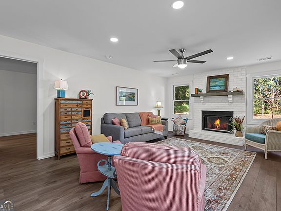 NEWLY RENOVATED OPEN CONCEPT RANCH ON A BEAUTIFUL LOT WITH MATURE SHRUBBERY AND TREES! The comfortable split floor plan offers three bedrooms and two completely updated bathrooms. The primary en-suite features a large tiled shower, double vanity with ample storage, and a walk-in closet. Highlights of the kitchen include custom cabinets, beautiful quartz countertops, a large island with generous storage, and gleaming new stainless steel appliances. The renovation included high quality floors, new doors, trim, and hardware, as well as new lighting inside and out! The oversized garage boasts a new door and the floor has been freshly coated with an epoxy coating. With connection to the HVAC, this large space is certainly a bonus! The spacious back deck and fenced in back yard expand the possibilities of enjoyable outdoor living as well! The extra building on the property is well suited for storage or hobbies. Other highlights include a tree house, horseshoe pits, and a greenhouse, too! Here you will find a beautiful, move-in ready home with all new amenities and an amazing property that offers privacy and serenity- located close to the bypass and only a short drive to downtown Newnan!