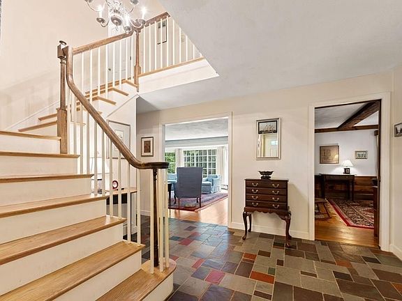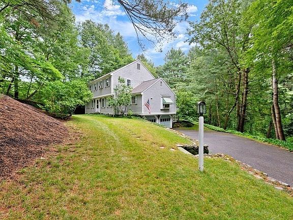 Beautifully sited 4 bd 2.5 bath Classic Garrison Colonial on 1.11 acres in the coveted Claypit Hill area of North Wayland. Set back off the road it provides ultimate privacy with mature plantings & stonewall. Special features are two-story foyer, hardwood floors thru out, beamed ceilings, two mantled fireplaces. Spacious foyer w/half bath leads to inviting frplc living room w/floor to ceiling windows. 1st flr office w/built-in bookcase, frplc family room w/slider leads to three season porch and deck overlook private back yard. Eat in kitchen w/ white cabinetry. Second floor includes master bedroom w/attached bath; three additional bedrooms and full bath. Finished walk-out LL w/ ample closet space and workshop.Two car garage provides extra storage. American Home Shield Warranty included in sale, most appliances 5 years old or newer. Passed Title 5. Ready for cosmetic updating; gain instant equity to make it your own! Convenient to Town Center, Lincoln MBTA & top-rated Wayland schools.