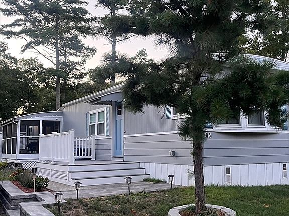 This warm and beautifully updated home in a desirable 55+ community is truly move-in ready. The entire interior was professionally refinished in 2023, featuring a new heating system, updated plumbing and water heater, upgraded electrical, brand-new flooring and carpeting, and a fully renovated kitchen with quartz countertops, new cabinets, and new appliances including a dishwasher, stove, refrigerator and microwave. In 2024, major exterior improvements were completed, including a full roof replacement, removal of overhanging trees, installation of low-maintenance Trex decking, fresh exterior paint, new landscaping, and a retaining wall. New shed built with electricty in 2025. The community offers a welcoming clubhouse and inground pool, with bocce and pickleball courts coming soon. All major systems and cosmetic updates have been taken care of—just unpack and enjoy low-maintenance living in the coastal charm of Wareham!