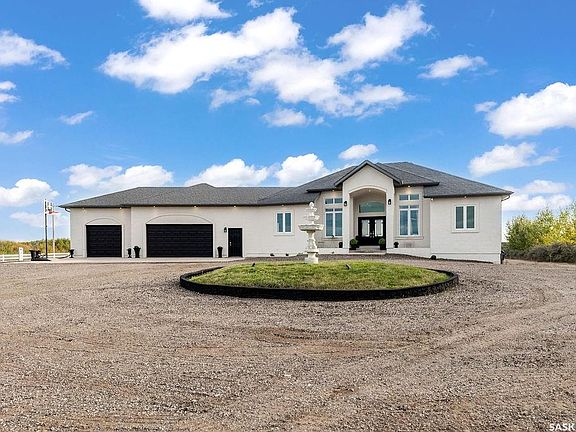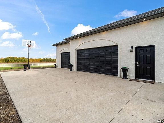 This peaceful 3.5 acre retreat features a sprawling walkout bungalow with close to 4,800 sq ft of living space designed for luxurious country living, yet still close to city amenities. Bright open-concept layout with high ceilings and lots of windows allowing for plenty of natural sunlight. The gourmet kitchen showcases elegant cream cabinetry, granite countertops and high-end stainless steel appliances, along with a convenient kitchen sweep, and walk-in pantry. A spa-inspired primary bedroom has cozy fireplace and direct access to the back deck, also features a relaxing jetted tub and a huge walk-in closet complete with custom built-in dressers. Second bedroom on main floor would also make a great home office. Main floor laundry room is thoughtfully designed with plumbing and electrical setup for a potential conversion into a nail or hair salon. Walkout basement is ideal for entertaining or multi-generational living, with room for theatre seating and hook up for potential bar or kitchenette. 3 bedrooms with large windows, 2 bathrooms, a workout room and furnace room complete the basement. No shortage of storage space in this home! Comfort is elevated with in-floor heating in all of the bathrooms. Garage floor and basement floor have separate boiler system, which would also work to heat potential swimming pool. Oversized triple-car garage provides ample storage and workspace with heated floor and 220 amp service. Large driveway for plenty of parking space and eco-friendly driveway constructed from recycled highway asphalt. Step out onto the expansive deck, perfect for morning coffee or evening sunsets, surrounded by nature, this property offers tranquility, space, and sophistication!