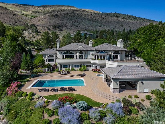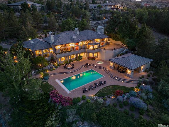 They say opportunity only knocks once! Perched up high in the gated community of Eagle’s Nest, this trophy property is a once in a lifetime opportunity. Custom designed by renowned architect Peter Wilday, the brilliance of 85 Hawken is unparalleled. From the panoramic views to the soaring ceilings and flowing layout, this property has it all!, Upon entry, the views are intoxicating. Oversized picture windows flood the space with natural light, illuminating every chic detail. With a perfect blend of uncompromising quality and brilliantly positioned focal points, this home is the perfect mix of timeless luxury and warm comfort. From the gated driveway and marble floored entry, the experience of the home begins. To the right , the split-level staircase cascades down to the master suite and en- suites. To the left, double doors open to the power positioned library with built-in shelving and a bay window with courtyard views. Refinished walnut floors shimmer through the formal living and dining rooms, complete with one-of-a-kind light fixtures, fireplace, and spectacular oversized picture windows. Enter the great room and masterfully designed chef’s kitchen featuring a Wolf gas range and double ovens. The Sub Zero refrigerator, 3 kitchen sinks, double dishwashers, and panoramic views are any chef’s dream. When entertaining, the caterer’s kitchen off the main hallway offers ample space for overflow, storage, and cleanup. Needing a bottle of wine to pair with dinner? Enter the top floor wine cellar entry and wind down the spectacular Stodmeister staircase, hand built and brought into the home as one piece. The humidity and temperature-controlled cellar holds over 1,500 bottles of wine with an entertainment island and a bottom level digital lock access door. Open the French doors off the great room to the outdoor upper patio and outdoor kitchen. With panoramic views of the city, mountains, and pool, al fresco dining has never been more impressive. The outdoor kitchen is designed with Bull appliances including a stovetop, smoker, grill, and ice machine, granite countertops and a built-in pizza oven. The exquisite master suite exudes serenity with its pool, city, and mountain views, all on its own wing of the house. Pass by the jetted, double tub and steam shower to enter the 2- story master closet. With its own spiral staircase and $50k in upgrades, this is sure to be the closet of anyone’s dreams! Downstairs are 2 en suites and guest bedroom all with breathtaking views. Pass by the laundry and wine cellar, through the bonus room and enter the stunning, half million dollar outdoor oasis constructed in 2016. Boasting an open-air pool house with 3 built in 12’ heaters, a mounted television, fan, and storage room with access to plumbing. Dip into the tranquil, 9’ deep swimming pool or relax in the in ground hot tub. Enjoy evenings around the fire pit while watching the city lights and stars sparkle. Other notable details include an outdoor dog run with access to an indoor dog run space. The half bath off the oversized 3 car garage has a dog bath/shower for ultimate convenience. The 3 car garage is 1,168 sq ft with plenty of room for storage and toys. The front courtyard has 3 additional parking spaces. The entire front and backyards are on a drip system, including the patio planters. Intercoms throughout the house have push button controls to open the driveway gate. Upon entry to the driveway an interior bell rings to notify residents of a guest’s arrival. New paint and carpet. New high-end stucco and paint on the entire exterior.
