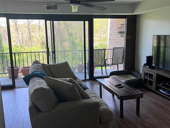 The glass panels on the back wall and large sliding door opens to large concrete patio/ balcony which overlooks the 50 Acre Aquetong park that has and hike and bike trail with beautiful views. Perfect for relaxing an quiet stroll or working out.