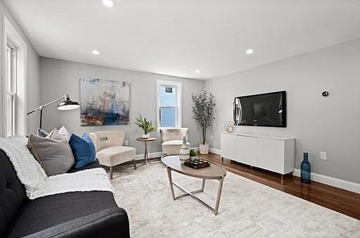 Welcome home to this beautifully renovated house in a desirable neighborhood. No stone was left unturned during the remodel. The first floor offers a spacious living/dining space leading to the kitchen which features white shaker cabinets, center island, Carrara Venatino Quartz countertops, stainless steel appliances and walk-in pantry. The second floor features two bedrooms with ample closet space and a full bathroom. Finished basement offers large entertainment area, a full bathroom, laundry room and bonus room that can be used for storage, gym or home office. The possibilities here are endless. Oversized garage has plenty of room for your car and storage. Enjoy your evenings in the large back yard featuring new deck and koi pond. Located steps away from Whitmans Pond and just a few miles from highway, commuter rail and shopping center. Open House Saturday and Sunday 12-3pm. Offers due Monday 6/21 at 5pm.