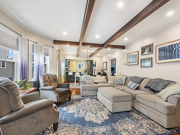 Welcome to 85 Lancaster Ave, a spacious and light-filled home in Revere’s desirable Point of Pines neighborhood, with easy access to public and private beaches. Enjoy the fresh ocean air and nearly 2,800 sq ft of flexible living space. The enclosed sun porch opens to a bright living and dining area with beamed ceilings and abundant light. The main level features a large eat-in kitchen (renovated in 2022), a ¾ bath, a den/office, and a bedroom—ideal for first-floor living. Upstairs are four generous bedrooms, including a front-facing room with ocean views, plus a full bath and great storage. Recent updates include a new heating system (2020), new roof with 50-year shingle, and solar panels for energy efficiency. A partially finished basement, spacious back deck, private yard, and off-street parking add to the appeal. Close to shopping, transit, highways, and Logan Airport—this rare coastal gem is move-in ready.