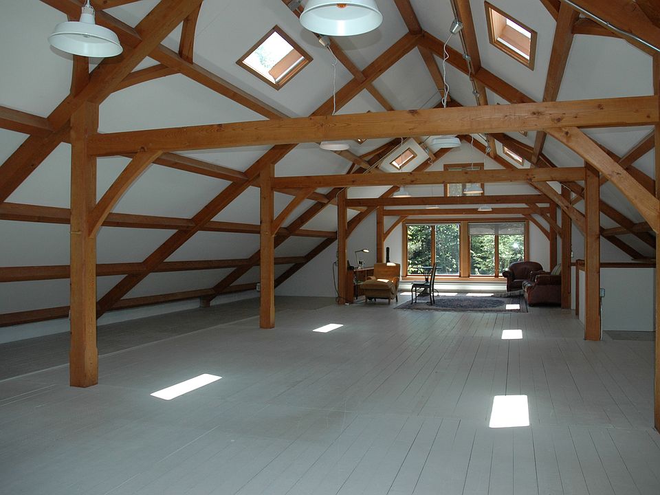 Custom built timber frame lodge on 6 cleared acres. ( barn, pond adjacent )