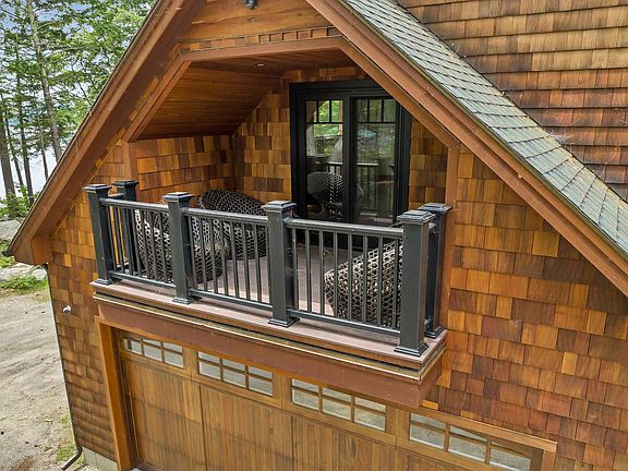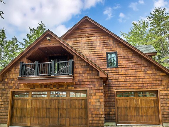 This premium 5500 Sq.Ft Mirror Lake Waterfront Adirondack-style residence in Tuftonboro, NH, offers a myriad of bespoke design features that ensure a lifestyle of luxury and comfort. The gourmet kitchen is an epicurean's dream, equipped with a 48-inch Wolf gas range, double wall ovens, and a 42-inch Sub-Zero refrigerator, accented by a grand double-thick soapstone countertop, perfect for culinary pursuits. The primary suite presents an attached office with stunning lake views, providing a serene workspace. The climate-controlled 3-car garage features epoxy flooring and radiant heat, combining functionality with style. For wine lovers, a climate-controlled glass wine room sits conveniently adjacent to the kitchen. The living room's artisan stone fireplace creates a striking focal point, ideal for cozy evenings. An elevator ascends to an upper floor, which houses an additional primary suite complete with an adjoining office, a walk-in closet, a rain shower, and a luxurious soaking tub. Wellness-focused amenities include an infrared sauna and a spacious family room equipped with a wet bar, ice maker, kegerator, and beverage cooler, perfect for entertaining. Secluded on .66 acres of pristine land adjoining conservation territory, this lakefront haven is a mere 10-minute drive from Wolfeboro, complete with charming shops, fine dining, and cultural attractions. Every detail of this home is crafted to offer the utmost in elegance, convenience, and privacy.