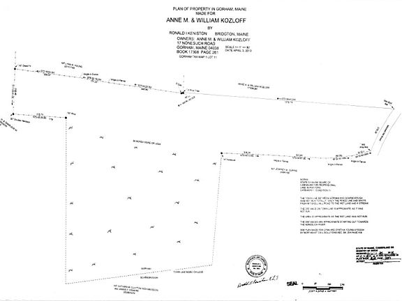 This lot sold with +/-34ac 278 feet of road front that started at a pin in the river valley. Lot was as depicted in Kenniston Survey in Cumberland County Registry of Deeds It is in documents attached