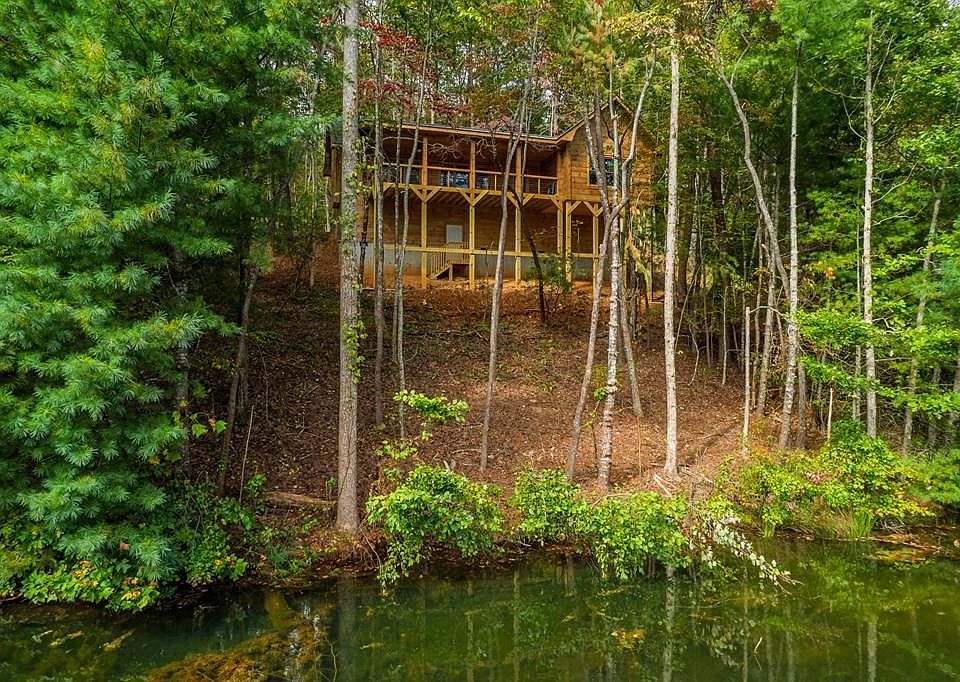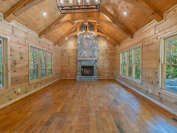 Nestled in a privately located setting, this cabin is your perfect escape—where you'll never want to leave the serenity it offers. Experience the beauty of this charming 2-bedroom, 2-bath log and timberframe cabin nestled on the edge of a tranquil lake with breathtaking views. Step into the soaring great room featuring spectacular beam work, a stunning rock fireplace, and gleaming wood floors that create a warm and inviting atmosphere. The kitchen showcases custom cabinetry with soft-close doors and elegant granite countertops, perfect for culinary gatherings. A full-length porch extends the entire front of the home, offering an ideal spot to relax and take in the stunning lake vistas. This picturesque retreat combines rustic elegance with nature's tranquility, perfect for lakeside living.