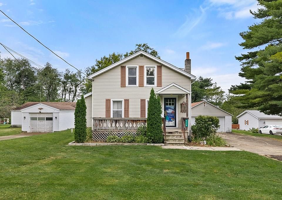 Situated on 2 lots totaling almost an acre, this 3 bedroom Madison home has a first floor Primary suite with full bath and laundry, living and dining rooms, kitchen with newer appliances, and screened-in back porch. The second floor has an updated full bath and two additional bedrooms. 2 window air conditioners to stay. Detached two car garage w/openers plus an additional one car garage leading to a massive workshop/garage with electric and a wood burning stove. New well installed in 2021. Selling "As Is".