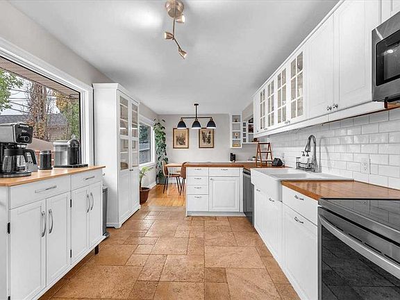 Quiet tree-lined streetOriginal hardwood floorsCustom wood-burning fireplaceSunlit farmhouse-style kitchenWood countertopsNew stainless-steel appliancesFully finished basement