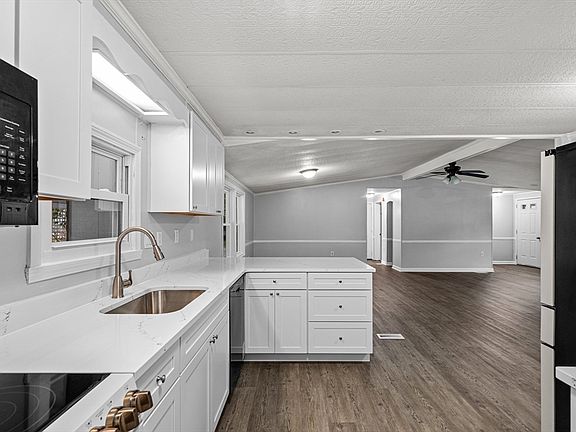 Welcome home to this beautifully updated 3-bedroom, 2-bath manufactured home in a desirable 55+ community! Featuring an open floor plan, the home offers all new vinyl plank flooring, plush carpet in the bedrooms, and a freshly painted interior. The updated kitchen shines with new cabinets, countertops, and top-of-the-line appliances—perfect for cooking and entertaining. Enjoy the outdoors from the screened-in porch or relax in your fenced-in corner lot with a storage shed for convenience. A newer carport adds extra value and protection. With thoughtful updates throughout, this home is truly move-in ready and waiting for its new owner. Pet friendly park, vibrant community with clubhouse, pool, library and hair salon. Close to local amenities. Start Packing!