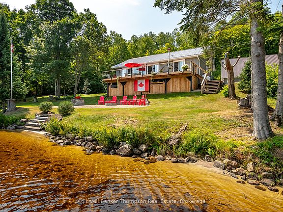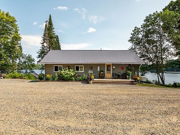 This stunning Deer Lake property offers an exceptional blend of natural beauty & thoughtful updates, creating an inviting retreat for year-round living or weekend escapes. Set on 3.5+ acres with 266 ft of gorgeous east-facing frontage, the setting feels like your own private park. The hard-packed sand shoreline provides a gentle, shallow entry into clear waters perfect for swimming, wading, or boating. A charming waterfront fire-pit area makes evenings by the lake unforgettable. The ideal gentle topography ensures easy movement around the grounds & plenty of space for outdoor activities, while towering trees frame sweeping views of the water.The 3-bed bungalow itself is bright & sunny, with large windows & an open-concept living/dining/kitchen area designed for connection & comfort. A cozy propane fireplace, installed in 2020 & upgraded in 2023, warms the living room, & sliding doors lead to a large deck overlooking the lake, refreshed in 2022 & skirted in 2024, offering a seamless indoor-outdoor flow for entertaining or quiet relaxation. The kitchen features stainless appliances incl. a propane burner stove & a built-in microwave, making meal prep easy while you enjoy the scenery.With over 1,200 sq ft of living space, this home has been carefully maintained & upgraded: new eavestroughs & downspouts in 2022, steel roof on the house & shed in 2023, new large living room windows in 2024 to maximize light & views, bathroom update in 2025, & a Generac generator added in 2021 for peace of mind. Vinyl siding adds to the low-maintenance appeal, while a dug well with UV filtration provides quality water. An incredible detached garage easily accommodates 4 cars with room to spare for equipment or workshop space. Combined with tons of parking, its perfect for hosting family & friends or storing recreational gear. Altogether, this property delivers the best of lakeside living, practical upgrades, & plenty of room to create lasting memories on beautiful Deer Lake.