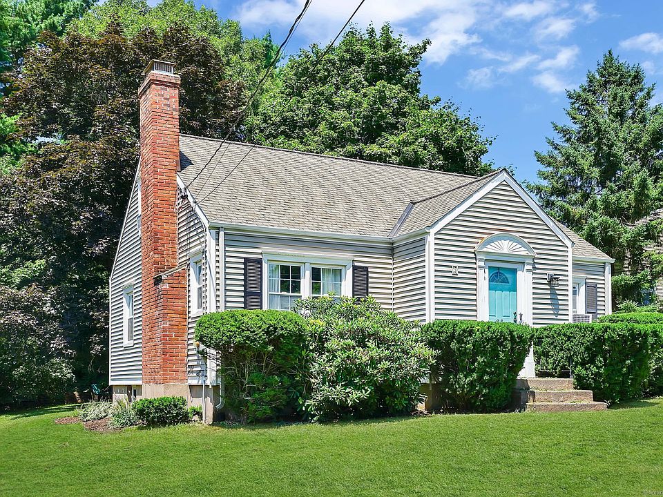Charming 1207 sq. ft. 3-bedroom Cape located in quiet neighborhood. Situated on 0.35 acres, this home offers hardwood floors and a number of updates. The front entrance has an alcove / mudroom that leads to a hardwood floor Foyer. Living room and Dining room bathed in natural light. The Living room includes an inviting raised-panel, wood-burning fireplace with accent windows, while the Dining room has an open feel with a half-wall to the Kitchen. The tiled-floor Kitchen utilizes the Dining room's half wall as a breakfast bar and includes a tiled backsplash, oak cabinetry, and a separate access door to the driveway. The first floor also includes a hardwood-floor, ceiling-fan-equipped Bedroom and a recently updated tiled-floor full common bath with shiplap and a lovely vanity. The second floor includes 2 additional, nicely finished hardwood-floor Bedrooms. The lower level contains a partially finished recreation space with plenty of storage along with a carpeted Office. The grounds include an off-Kitchen deck, a storage shed, and lovely shade trees. Newer heating system and hot water heater.