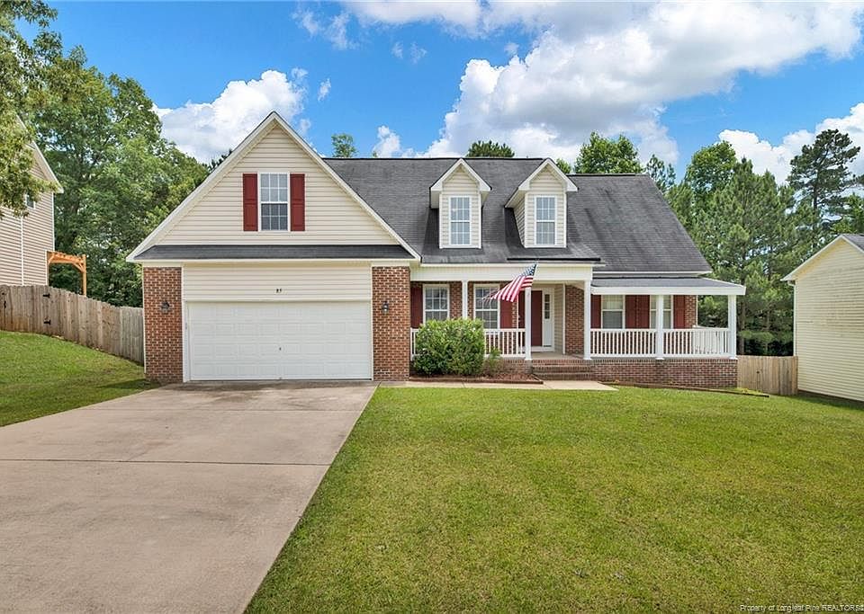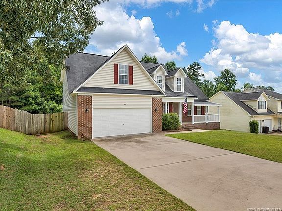 This idyllic home is located not far from Ft. Bragg, which makes for an easy commute. The front porch is perfect for enjoying the beautiful NC summers. Step into the living room, which has vaulted ceilings and hardwood floors and fireplace making it cozy. The living room and kitchen get ample natural light due to the abundance of large windows. The kitchen features an island that provides more than enough counter space and is equipped with all the necessary amenities. There is a large formal dining room as well. The Master is located on the 1st floor, which features WIC and trey ceilings. The master bath has a garden tub, separate shower, and double vanity sink. Upstairs you will find the additional bedrooms, a bonus room which can be used as a 4th bedroom, and a flex room. There is another full bath on this floor. The backyard is partially fenced and is home to a large deck and storage shed. Seller is offering a $2,500.00 carpet/painting allowance with agreed upon offer.