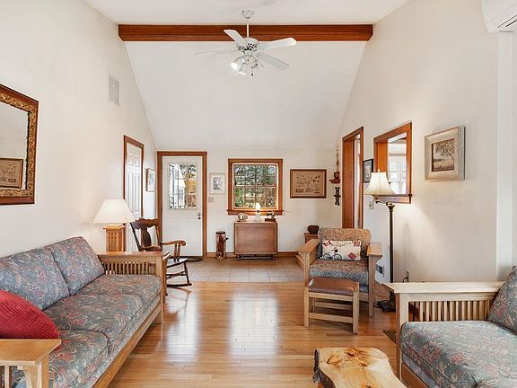 Sunny and welcoming, this 3-bedroom Cape offers flexible living space in a convenient, friendly location. The first floor includes a bedroom and full bath, plus a separate office/den, making single-level living an easy option. The updated kitchen features granite counters and opens directly to the spacious dining room with a fireplace and the adjacent family room, creating a comfortable flow for everyday living and gatherings. A screened porch overlooks the backyard gardens and handy work shed, offering a peaceful spot to relax. Upstairs, two spacious bedrooms and a second shower bath can be used as needed or simply closed off when you prefer to keep living on the main level. The lower level includes a dedicated workshop with interior access plus outside access through the bulkhead, along with a large room for laundry, projects, and storage. Central A/C and an attached one-car garage add comfort and convenience. This move-in-ready home places you close to the village center, bandstand concerts, bank, post office, grocery, Home Depot and your morning coffee stop.