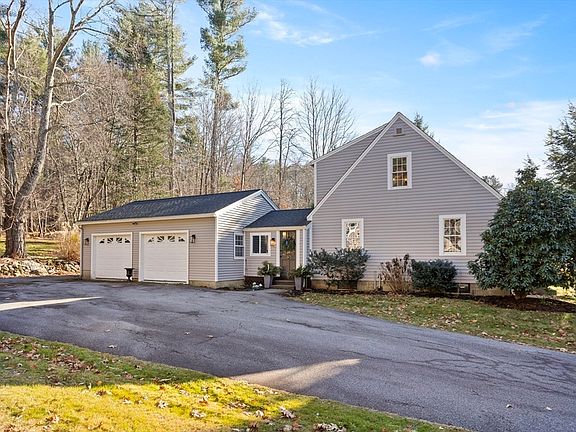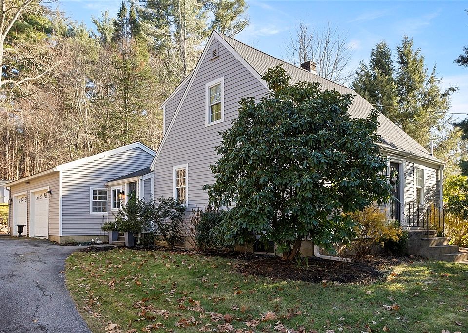 Quintessential country cape with stunning renovations and welcoming decor. Beautiful and bright new kitchen (2022) features white cabinetry, quartz countertops, stainless steel appliances, luxury vinyl flooring, and integrates a cozy breakfast nook. There is a brand new 1/2 bath with radiant heated tile flooring adjacent to this area. The front to back living room is the perfect spot to gather and relax. Gleaming hardwood floors carry through to the "flex" room (which can be used as a dining room, playroom or the 3rd bedroom),to the staircase and 2 upstairs bedrooms. With an enclosed breezeway and mudroom, access is easy from the 2 car finished and heated garage or from the exterior. A spacious fenced in back yard with fire-pit encourages outdoor activity and relaxation. This exceptional offering is ideally located close to shopping, services, conservation land, and is within 2.6 miles to the MBTA Station. A captivating and move-in ready home!