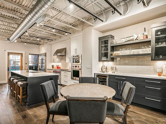 Northwest Modem Interior accents & industrial architectural design complement this newly renovated Mill Quarter Townhome. The Interior layout is perfect for small group entertaining, with intimate seating areas, a gas fireplace, and built-in bar area. The modern interior features dramatic ceilings, exposed ductwork, a new gourmet kitchen w/commercial Subzero & Wolf appliances. hardwood and concrete floors, private elevator, 3 En Suites and an expansive private rooftopdeck. Relax under the stars complete with Hot Tub & Mountain views! With a full complement ofamenities this Brownstone offers four seasons of alfresco luxury for you and your guests. Located in the heart of Bend in the Old Mill District near Downtown. And no HOA fees!