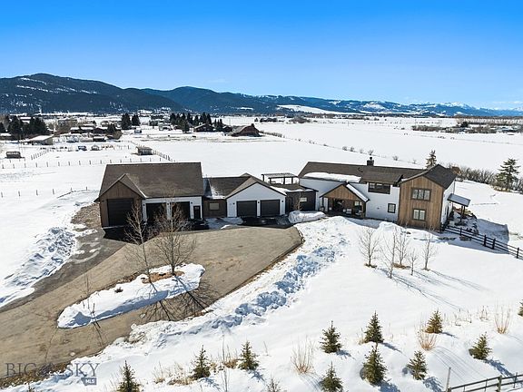 Just 12 minutes from bustling Downtown on Bozeman's coveted south side, this exceptional property offers a harmonious blend of luxury living and endless outdoor recreation. With over 1.6 acres of beautifully landscaped grounds and panoramic views of the Bridger Range, iconic “M”, Hyalite and Spanish Peaks mountain ranges, this home is an idyllic retreat for those who appreciate the finest in design, comfort, and convenience. The 5,400+ square-foot residence has been meticulously updated at every angle, including an addition of 540+ square feet, creating an open-concept floor plan that seamlessly flows throughout. The chef’s kitchen features high-end GE Cafe appliances and quartz countertops, while the butler’s pantry has an additional fridge, outlets for appliances and ample storage space. Open and bright, the main level boasts a stunning rock fireplace, soaring vaulted ceilings, and stunning Venetian plaster walls. The sprawling main floor master suite offers a private sanctuary, featuring a private entrance to the back patio and a spa-like en-suite bathroom complete with elegant Tadelakt plaster countertops, custom tiled shower, and luxurious soaker tub. Enjoy an additional space for an office/gym and a dog wash room on the main level. Upstairs, multiple en-suite guest rooms and an additional living space with dry bar and beverage fridge provide the ideal place for family or guests. Step outside to discover the expansive outdoor living areas on both levels. Over 2,900 square feet of Trex decking spans two stories, with cable deck rails, ceiling fans, a fire feature, hot tub, and 65" TVs—ideal for entertaining or simply unwinding while taking in the breathtaking views. The backyard is a true sanctuary, with a large rock fire pit and a fenced area perfect for children and pets to roam. The attached 1,000-square-foot garage and and additional 2,800-square-foot shop are fully insulated, heated, and equipped with modern amenities including epoxy flooring, LED showroom lighting, RV bay with hookups, and a sports court/game area. Located just 10 minutes from Montana State University and within 20 minutes of Bozeman Yellowstone International Airport, this home combines serene privacy and convenience with access to some of the best outdoor experiences Montana has to offer. A true Montana dream property, this property is the ideal primary residence or spacious vacation retreat for the discerning buyer.