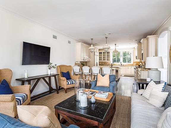 Rental Registration #: 25-1845 Ocean breezes and superb location on south of highway private lot sets the stage for this custom designed and beautifully finished home by master carpenters and artistic landscapers. This 5,000+ sq. ft. homes features an impressive double height paneled entry and staircase that leads to 2 story great room with dramatic fireplace, formal dining room, and professional kitchen. Coffered ceilings in library/den with built-in cabinetry and flat screen TV and lovely downstairs master suite with elegant bath of Jerusalem Limestone, complete the generous first floor living area. Second floor includes four spacious guest rooms and dramatic open gallery for guests with views of lovely grounds which include gunite pool with "Misty Rose" patio. Finished lower level includes state of the art gym with peleton, full bath with steam shower, guest room, and large entertainment theater area. Attached 2 car garage with plenty of room for all your Hampton Toys.
