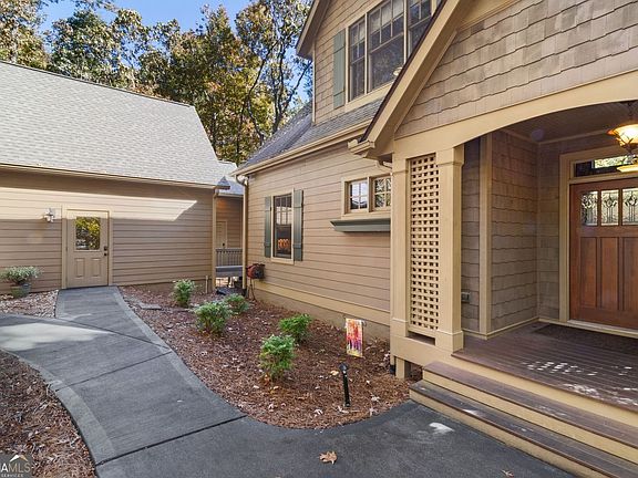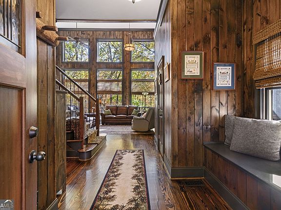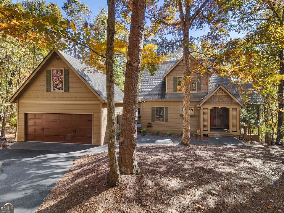 An inviting property, nestled at the end of a quiet street in the Indian Village section of Big Canoe, offering a tranquil escape. The home is in immaculate condition, featuring updates like a new roof, HVAC's, water heater, portable generator, and a "Flo" by Moen leak detection system. Flagstone pathways flank the house leading to a gently sloped backyard, perfect for easy outdoor living. Step inside the foyer you'll find a cozy window seat and a powder room and just beyond, an airy open layout, highlighted by soaring ceilings and expansive picture windows framing the peaceful wooded backdrop. You'll have cozy ambiance year-round with the stone fireplace in the living room. There's a spacious three season porch with its own stone fireplace, and access to the sprawling deck that is also accessible from inside the home. The updated kitchen is light & bright, has a custom built-in spice cabinet featuring a framed copper door adorned with a woodland scene, a built-in dining table with hidden storage drawers, and is well-appointed with high-end Bosch and KitchenAid appliances. Adjacent to the kitchen, you'll find a mudroom to use as a "drop zone", a pantry and laundry hook-ups. Everyone's favorite, the primary suite is also on the main level. Downstairs, the terrace level offers two bedrooms, a full bath, laundry, and ample storage. Just outside is a covered dog run and covered deck both with underdeck system, perfect for pets and a rainy day. There's even a built-in storage room/shed for yard tools, offering extra convenience. Upstairs, a cozy loft with durable sisal flooring overlooks the living area and includes an extra room with a large walk-in closet and full bath - use it as an office/craft/bonus or 4th bedroom. It's always great to have a flex room! The two-car garage comes with an attached storage room for all your gear. Enjoy the nearby Indian Rocks Park and its historic nature trails, a favorite destination for peaceful walks and outdoor adventures. You're less than five minutes from the Marina and just 10 minutes to the north gate, with even quicker access to the heart of Big Canoe and its many amenities. This home blends pristine condition, thoughtful updates, and nature-focused living in one of Big Canoe's most desirable tucked away locations. *Buyer to verify all information and dimensions deemed important.