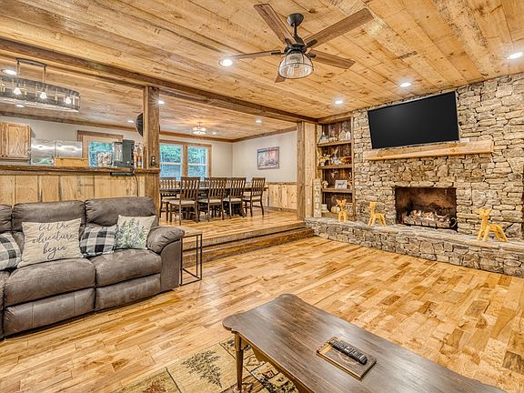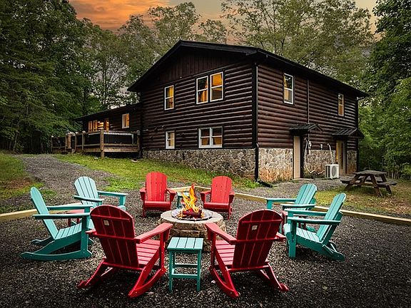 This beautifully renovated 5-bedroom, 3-bathroom cabin offers breathtaking mountain views, complete privacy at the end of a quiet road, and a strong rental history! With a perfect blend of traditional style and modern upgrades, the home feels nearly brand new. The open-concept layout features a spacious living, dining, and kitchen area, complete with a striking fireplace, large kitchen island, full dining space, additional bar seating, a walkout to the back deck with a hot tub, and a cozy office nook.  The main floor includes 3 generously sized bedrooms and 2 full bathrooms, including the master suite. A few steps down lead to 2 more bedrooms and another bathroom. Continue downstairs to discover a large game room or den.  Perfect for rental opportunities, the home offers two fireplaces, two living areas, two laundry rooms, and two master bedrooms. Situated on a private, unrestricted 2-acre lot, the property provides peaceful seclusion, surrounded by nature and wildlife!