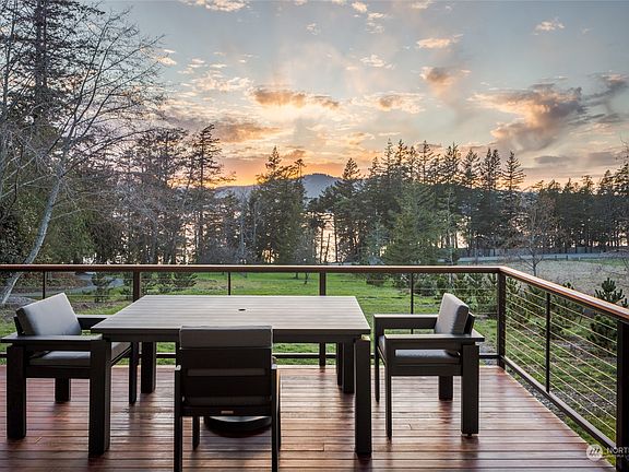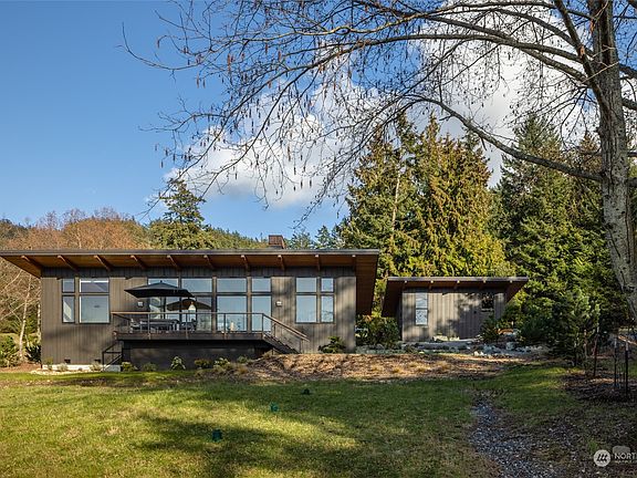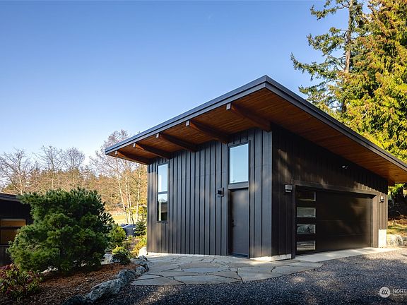 Masterfully designed by PITCH Architecture, this NW contemporary balances open design, use of light, high-end construction & amenities & spectacular sunset views. The sophisticated home welcomes w/exposed wood details & copper caps, soaring ceilings, floor to ceiling windows & warm natural light. The open living room, full entertaining kitchen & significant deck seamlessly connect indoor/outdoor living. The common areas & each of the large bedrooms is sun filled with westerly views. Detached fully finished two-car garage w/room for shop or more. Solar power for super low energy costs. Beautifully landscaped with low maintenance plantings & private pocket beach allowing you to enjoy remarkable sunsets from your home, deck, or your own beach.