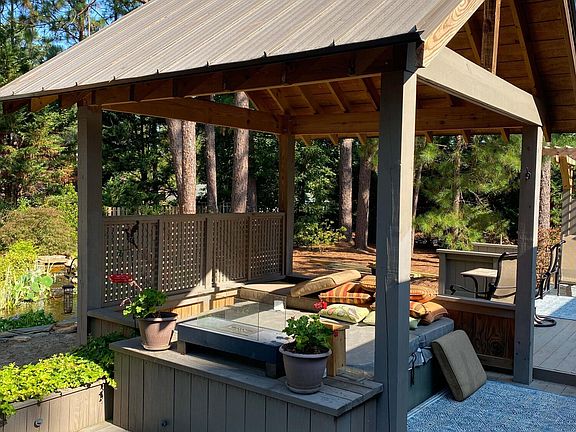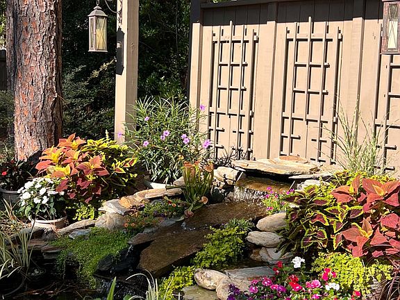 The laundry room with a Whirlpool Washer and Dryer convey with purchase. A beautifully redesigned staircase leads to a guest room, a newly remodeled guest bath and a bonus room with closet and access to attic storage. A small sunroom off the kitchen can be used as a dining area, reading nook or office with a sliding door that opens onto a huge deck that spans the length of the home. The beautifully landscaped backyard will take your breath away with 2 koi ponds with waterfalls, a hot tub under a covered pavilion and a huge deck for great entertaining or just relaxing. The home exterior and deck has been recently painted.