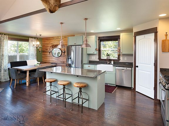3,600+ square foot home in the Monforton School District! This home is a blend of comfort and Montana rustic with modern functionality. Walk into the main level to the open concept kitchen and living area. The shiplap accent wall and gas burning fireplace give it a comforting feel. Seamlessly easing into the modern kitchen with marbled quartz countertops, spacious pantry and sizable dining area. Also on the main level is the master bedroom with a quaint corner nook and walk in suite. Master bath boasts a cast iron claw footed tub, shower and two separate walk in closets. The basement level has two extra large living areas, great for home gym, tv room, recreation, etc. as well as two generously sized bedrooms and a full bathroom. The landscaping is meticulously maintained with underground sprinklers and flourishing cherry and pear trees. This home is spacious, well taken care of, and close to shopping, restaurants, schools, world class fishing and skiing and the airport.