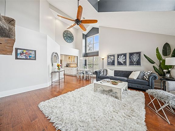 Stunning best describes this recently renovated end-unit townhome in desirable Unity Square! You’ll love the soaring ceilings and the dramatic living room featuring a 2-story stone gas fireplace. The chef’s white kitchen boasts granite counters, stainless appliances, and ample cabinetry, while solid surface flooring flows throughout the first floor for a sleek, modern feel. The primary bedroom offers a luxurious ensuite bath with a gorgeous walk-in shower. The beautifully finished lower level adds wonderful extra living space. Step outside to enjoy the incredible outdoor area with an expansive deck, built-in seating, and extensive landscaping—perfect for entertaining or relaxing. Plus, residents can enjoy the neighborhood pool for carefree summer living!