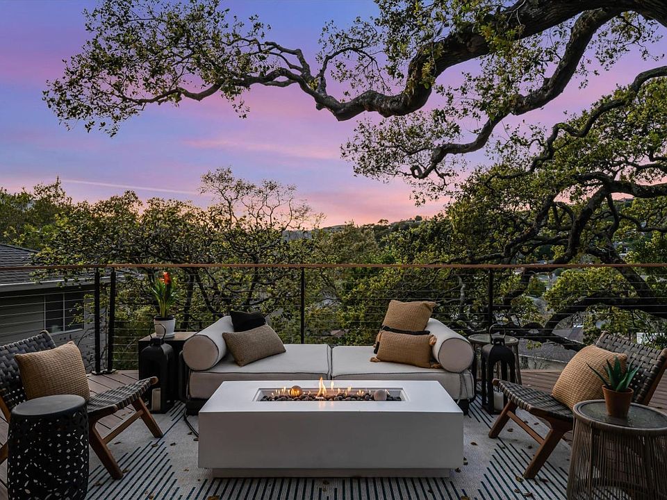 A Sheer Design Group LLC remodel that embraces light and maximizes views of Mount Tam and Greenbrae hills. From the gourmet kitchen to the spa inspired bath, warm woods and authentic marbles blend to provide a connection with nature. Rich, glowing oak flooring complements the natural light. When you step inside, you're greeted by a spacious sunlit living room with a stunning fireplace wrapped in white plaster. The home lives like a single level and features 3 beautifully appointed bedrooms and 2 full baths with a bonus room on the lower level providing flexibility for guests or a home office. A professional "Cook like a God'' kitchen with Thor appliances include a gas range, French door refrigerator and a freestanding island featuring quartz countertops. Whether you're a culinary enthusiast or simply enjoy gathering around good food, this kitchen is sure to inspire. The primary suite is a highlight offering a luxurious ensuite bathroom, soaking tub and ample closet space. Surrounded by two majestic oak trees and generous decks the home offers a peaceful retreat with a serene Zen-like landscaping. A 2-car garage includes a washer/dryer, EV charger & more. With coveted Kentfield schools nearby and easy commute the home is waiting to be filled with new memories.