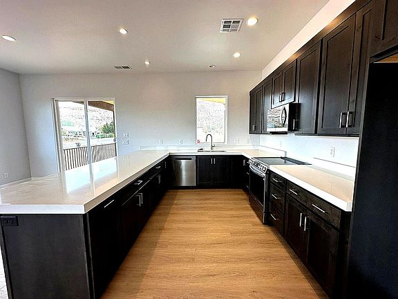Flowing seamlessly from the kitchen is the expansive great room and dining area, all opening to a covered view deck where sunrises over Zion’s towers and sunsets toward the Grand Canyon will become your daily ritual.