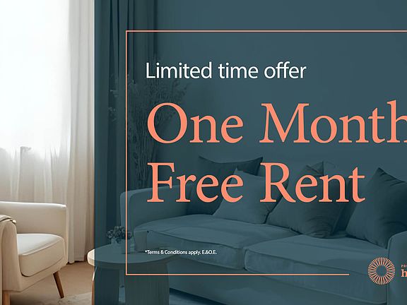 - Special offer! One Month Free Rent | Limited Time Only - For a limited time, you can receive up to ONE MONTH FREE RENT on select suites when you sign a 12-month lease. * *Receive your first month free on select suites for a limited time only. Contact the leasing team for details. Valid on new move-ins. Pricing, incentives, and availability are subject to change or end without notice. Terms & Conditions apply. All pictures shown may not be representative of all suites available. E.&O.E. Call our dedicated team today to apply!