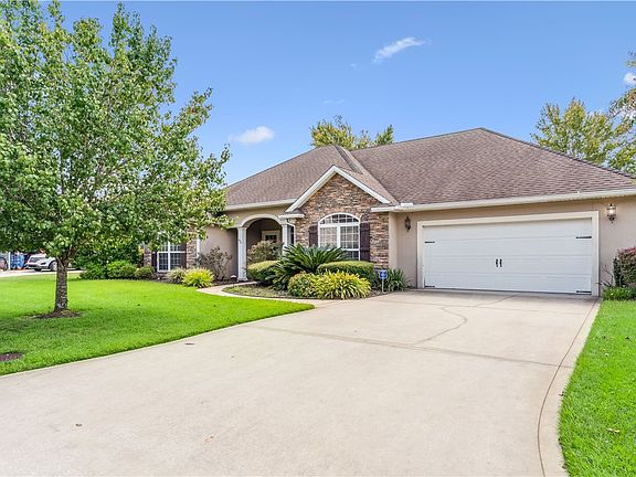 Beautiful 4 bedroom home in desirable Carriage Gate Plantation! This home has a water view to the lagoon from the screened in porch. A great place to enjoy your relaxing morning cup of coffee or your favorite beverage at the end of the day. Large windows provide for a lot of natural light and high ceilings and double crown molding provide for those desirable extras that make this home special. Other than 2 of the 3 guest bedrooms and the hall it's beautiful hardwood floors through out. The spacious family room features a gas log fireplace and large windows with a view to the pond. The kitchen has an eat in area, granite counter tops and stainless steel appliances. The master bedroom has hardwood floors and the master bath is accessed through attractive french doors and has a double vanity, garden tub and separate tiled walk in shower. The front guest bedroom has hardwood floors and could also double as an office. There is a whole home water softener system and also a Rainbird irrigation system. This home has to be seen to be appreciated. Easy to see so call for your private showing today!!