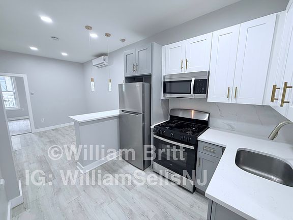 The open concept kitchen has stainless steel appliances and plenty of cabinet and counter space. The bathroom has been completely upgraded. Each room of the apartment has a remote controlled wall mounted AC/heating unit. Just off of the kitchen is the living room area and washer/dryer machine. Both bedrooms can accommodate full-sized bedroom sets. Conveniently located within a short walk to public transportation to Journal Square and New York City. Perfect for commuters.