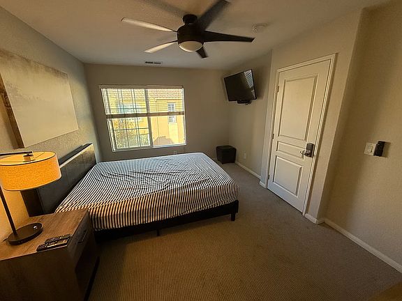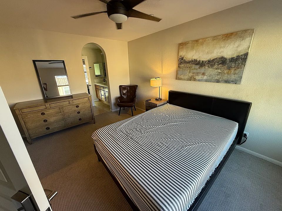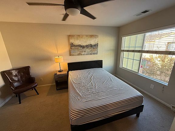 FURNISHED private master bedroom with private, ensuite bathroom in a 3 bed / 3 bath townhome. Everything in the bedroom pictures included as part of the furnishings (bed, dresser, TV, etc).