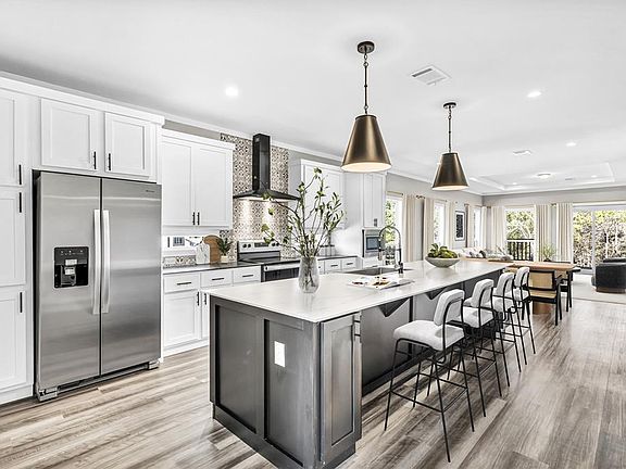 Creekside backdropClean linesExpansive yardSleek modern designWalk-in closetSpa-style bath