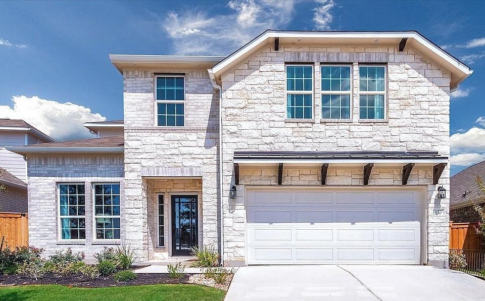 Never lived in this former Sunfield model home offers premium upgrades and prime location. Just 26 minutes to Downtown Austin and the airport, with access to resort-style amenities including a lazy river, pools, parks, and trails. Step into a striking two-story living room with 20-ft ceilings, fireplace, and abundant natural light. The gourmet kitchen features quartz countertops, white cabinetry, and stainless appliances and flows seamlessly into the dining and living spaces. The main level includes a spacious primary suite with a luxe bath and walk-in closet, plus a dedicated office. Upstairs are three bedrooms, a loft, and a media room. Enjoy over $100K in upgrades including a new refrigerator and stove, custom curtains in each room, speakers in media room, and surround sound speakers through out home and universal receiver for the surround sound system. The home backs to a greenbelt with trail access and sits steps from Sunfield's amenities. The finished garage is currently built out as two air-conditioned offices and not set up for parking. A rare turnkey, fully upgraded home in one of Central Texas's fastest-growing communities.