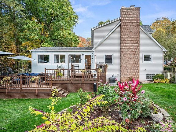 Located in West Akron this beautifully updated home sits on a picturesque premium property on over .38 of an acre surrounded by lush landscaping and backing up to a park. This spacious home includes a finished walkout basement, a three-season addition, 4 bedrooms, 2 baths, 2-car attached garage, fenced-in back, side, and front yards, and 2 fireplaces, and blends timeless craftsmanship with modern comfort. The remodeled custom Amish-built kitchen showcases rich navy cabinetry that pairs beautifully with rare Brazilian quartzite countertops & subway tile backsplash, center island & stainless steel appliances. The formal dining room with two built-ins opens to a family room with large picture window & a fireplace framed by more built-ins. One of the bedrooms is located on the 1st floor with full bath adjacent to it that could be used as an office or guest suite. The primary bedroom features hardwood floors, a built-in vanity & multiple closets. A large walk-in closet on the second level hall is an extra bonus feature of this home. Enjoy nature's retreat on the deck overlooking the beautifully landscaped yard surrounded by mature trees, vibrant garden beds & thoughtfully curated plantings that create a sense of privacy & tranquility, while the lawn space provides plenty of room for play. Some of the most recent updates include: replaced central air, remodeled kitchen & 1st floor bath, replaced storm doors, installed privacy fencing (2024), replaced flooring in living, dining & sun room, replaced front sidewalk & steps (2025), replaced water heater (2023), replaced exterior with vinyl siding, gutters w/guards, downspouts & soffits, installed SS appliances (2022), finished part of the basement (2021), added 3 tier deck (2020), refinished hardwood floors in bedrooms (2017), and more... INCLUDED are ALL kitchen appliances, washer/dryer & window treatments. Conveniently located near I-77, OH-8, OH-18, shops, restaurants & many other local attractions.
