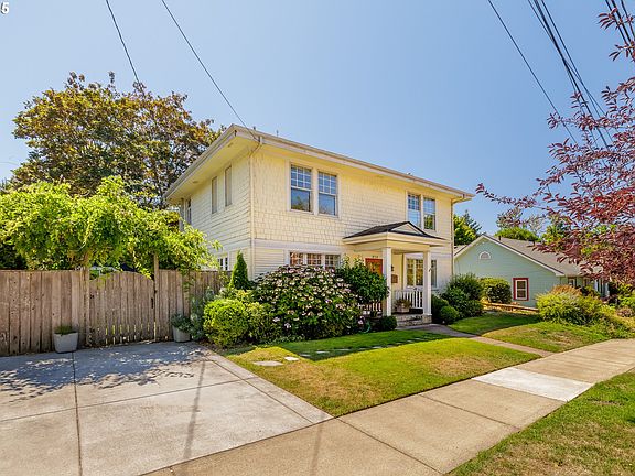Perfectly situated near the University of Oregon, beautiful neighborhood parks, and top-rated schools, this timeless Foursquare blends classic architectural charm with thoughtful modern updates. Bathed in natural light, the home offers a seamless flow between living spaces, making it equally inviting for daily living and entertaining.Inside, rich wood floors and vintage details honor the home’s heritage, while a modern design sensibility brings comfort and style. Originally built circa 1925 and moved to this location approx. 1965, giving this home a younger foundation and longer lifespan. The airy living and dining rooms are filled with sunshine, leading to a spacious updated kitchen that is both functional and welcoming. Upstairs, well-proportioned bedrooms continue the warm, light-filled ambiance.The large basement provides ample room for gear, storage, and laundry, ensuring everything has its place. Outdoors, a beautifully landscaped yard unfolds in layers of patios and decks, offering multiple spots for dining, lounging, and enjoying the seasons. An additional outbuilding—perfect as a workshop, art studio or convert to fit your needs —adds versatility and creative potential. Gas forced air with AC, new roof (2019), newer electrical panel, gas fireplace, and heat pump water heater (2019).With its prime location, abundant light, and graceful combination of historic character and modern livability, this home is a rare treat ready to be cherished.