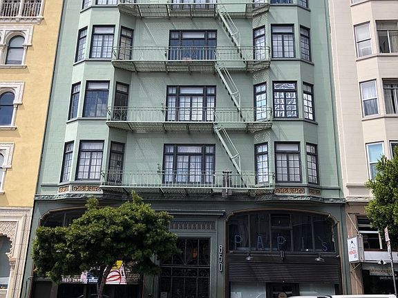 The building on a nice block of Geary, between Hyde and Larkin, a few blocks from Union Square shopping, the civic center and Van Ness (101). Likely one of the best kept and nicest buildings downtown.
