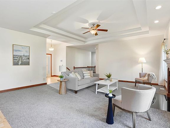Sprawling Ranch on a Cul-de-Sac-Welcome home to this gorgeous, light-filled ranch offering over 3,000 sq ft of beautifully finished living space! Step inside to find an open floor plan with soaring 10-foot ceilings, huge windows, & gleaming hardwood floors that flow through the entry, kitchen, and dining areas. The inviting main-floor great room features a cozy gas fireplace—perfect for relaxing or entertaining year-round. Fresh paint & new carpet add a crisp, move-in-ready feel. The spacious primary suite features a large bath with double sinks, soaking tub, and separate shower. With 5 bedrooms and 3 full baths, there’s room for everyone—plus a fully finished lower level offering a huge family room, guest bedrooms, and plenty of storage. Enjoy quiet evenings on the deck overlooking the fenced yard. The oversized 3-car garage provides room for vehicles, hobbies & more. This home combines luxury, functionality, and warmth.
