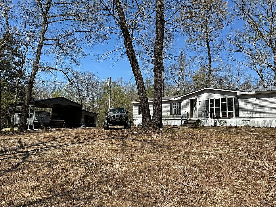 Come complete this manufactured home project sitting on 20 acres. Solid structure and many updates that include brand new metal roof, 90% of home freshly painted, drywall & flooring have already been done. Home has electric and septic already in place; water is currently being shared by neighbor so may need a well dug. There is a brand-new covered carport 30x40 with 8' enclosed lean-to. Home is about 1 mile from Kentucky lake and numerous boat ramps. Would be great for a hunting cabin or vacation getaway. If you're looking peace and quiet, this is the place. The area is great for atv rides, boating, fishing, hunting, etc.