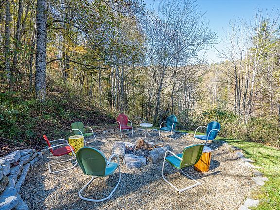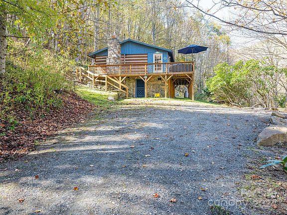 Perched at 3200', this sweetheart exudes quintessential mountain pleasure. The wrap-around deck is perfect to grill out, bask in the canopy of hardwoods on the 1.48 acre wooded lot, and listen to bold Big Laurel Creek across the low travelled road. The professionally built fire pit is meant for laughter with friends. Expanded parking created with a new stone wall. The kitchen is a doll. Custom cabinetry. New checkered tile floor. Authentic metal farm sink. Screen-door pantry. Enjoy warm tootsies with heated floors in the remodeled baths. Crawlspace has a French drain. Radon mitigation in place. HVAC 2020. "Family room" can be a cozy sleeping space. 12 minutes to the new boutique ski resort Hatley Pointe. 14 min to Wolf Laurel CC with dining, golf, hiking trails. 30 to Burnsville and 35 to Asheville. No restrictions.