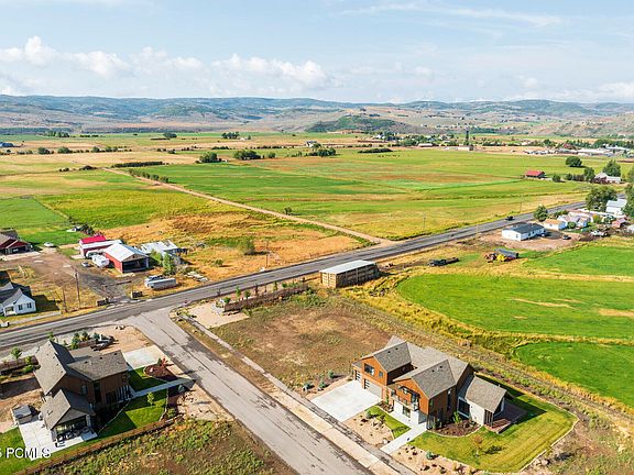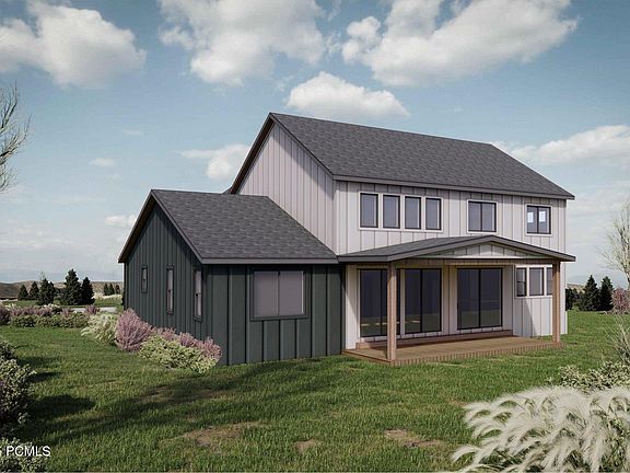 Uinta House offers a modern, spacious design just 30 minutes from Park City, defined by clean lines and abundant natural light. The open-concept living room features dramatic double-height ceilings, while large windows throughout the home flood every space with sunlight. The chef's kitchen is equipped with high-end appliances, a generous pantry, and elegant granite and quartz countertops in both the kitchen and bathrooms. Seamless indoor-outdoor living is enhanced by the covered back porch with floor-to-ceiling sliding doors, ideal for taking in the breathtaking views of the Uintas. The main floor provides ample living space, including a large walk-in closet, a flexible room off the entryway perfect for an office or family space, a convenient laundry room, and a comfortable mudroom off the garage. The three-car garage includes a 14' high third bay ready for your RV. Upstairs, a spacious loft opens to the lower level and is accompanied by three bedrooms—two with walk-in closets—and two bathrooms, offering plenty of room for family and guests. Situated on a generous lot with sweeping mountain views, Uinta House combines elegance, functionality, and mountain-adjacent living, making it ideal for families seeking comfort, style, and space.